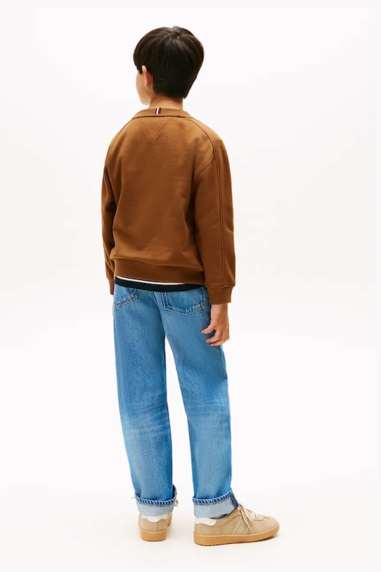 Детская толстовка из коллекции Tommy Hilfiger выполнена из эластичного трикотажа. Модель выполнена из исключительно комфортного, дышащего материала с высоким содержанием хлопка. - Свободный крой, обеспечивающий полную свободу движений. - Круглый ребристый вырез. - Длинный рукав. - Крой рукава со спущенной линией плеча не ограничивает подвижность. - Рукава и низ изделия отделаны манжетами для защиты от неблагоприятных погодных условий. - Графический логотип бренда спереди.