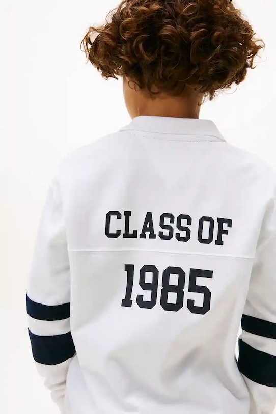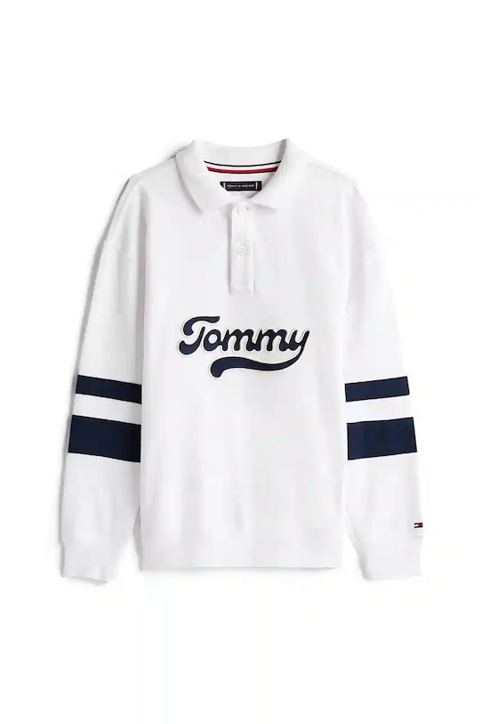 Детская толстовка из коллекции Tommy Hilfiger выполнена из тонкой эластичной ткани. Модель выполнена из дышащего хлопкового материала. - Свободный крой, обеспечивающий полную свободу движений. - Модель с мягким воротником. - Застежка на короткие пуговицы обеспечивает эффективную вентиляцию и легкость надевания и снимания. - Длинный рукав. - Крой рукава со спущенной линией плеча не ограничивает подвижность. - Рукава и низ изделия отделаны манжетами для защиты от неблагоприятных погодных условий. - Модель с печатью и аппликацией.
