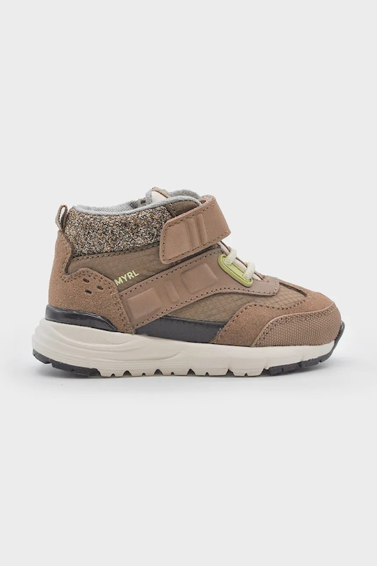 Детские зимние ботинки из коллекции Mayoral. Эта лёгкая утеплённая модель выполнена из комбинации натуральной кожи и синтетического материала. Подошва гибкая, прочная и устойчивая к повреждениям. - Модель частично изготовлена из волокон, произведенных с использованием устойчивых производственных процессов, что позволяет снизить их воздействие на окружающую среду. - Приподнятый верх помогает укрепить ногу в области лодыжки, что защищает от неконтролируемых движений при движении по неровной поверхности. - Застежка-липучка позволяет легко надевать и снимать обувь. - Текстильная внутренняя часть комфортна для ног и облегчает содержание обуви в чистоте. - Резиновая подошва прочная и устойчивая к повреждениям.