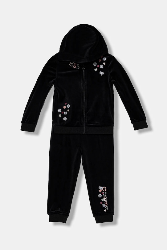 Этот детский спортивный костюм из коллекции Guess выполнен из тонкого, эластичного трикотажного полотна, мягкого и приятного на ощупь. - Содержит переработанный пластик. - Простой дизайн, не стесняющий движений. - Встроенный капюшон обеспечивает дополнительное тепло и защиту при необходимости. - Молния по всей длине с защитой подбородка. - Длинный рукав. - Рукава и низ изделия отделаны манжетами для защиты от неблагоприятных погодных условий. - Брюки свободные в области бедер и ягодиц. - Эластичный пояс предотвращает скольжение во время движения. - Ножки отделаны удобными эластичными манжетами. - Модель с декоративной вышивкой.