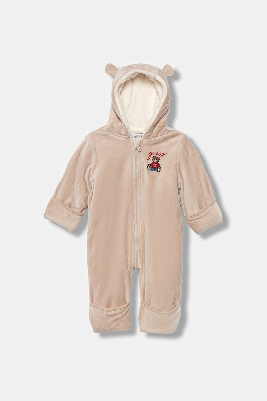 Детские пижамы из коллекции Guess. Изготовлены из гладкого трикотажного полотна. - Органический хлопок выращивается без использования вредных химикатов, химических пестицидов и искусственных удобрений. - Простой дизайн, не стесняющий движений. - Мягкая внутренняя отделка обеспечивает высокий комфорт использования и оптимальный тепловой комфорт. - Застежка-молния. - Модель с капюшоном. - Плотная, эластичная трикотажная ткань.