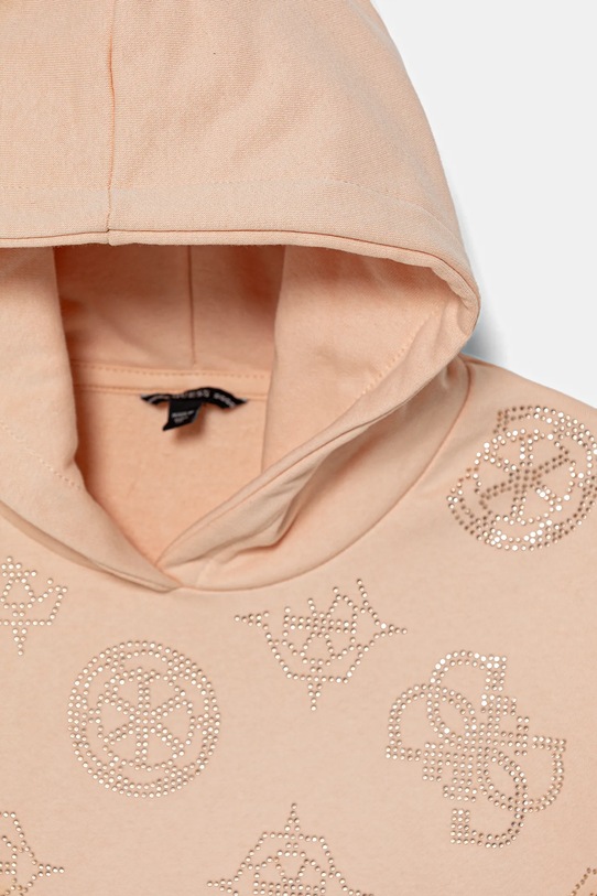 Эта детская толстовка с капюшоном из коллекции Guess выполнена из эластичного трикотажа. Модель выполнена из исключительно комфортного, дышащего материала с высоким содержанием хлопка. - Изделие содержит органический хлопок и переработанные полиэфирные волокна. - Свободный крой, обеспечивающий полную свободу движений. - Встроенный капюшон обеспечивает дополнительное тепло и защиту при необходимости. - Крой рукава со спущенной линией плеча не ограничивает подвижность. - Рукава и низ изделия отделаны манжетами для защиты от неблагоприятных погодных условий. - Мягкая внутренняя отделка обеспечивает высокий комфорт использования и оптимальный тепловой комфорт. - Модель со стразами. - Длина рукава (от капюшона): 62 см. - Длина: 52 см. - Ширина под мышками: 46 см. - Размеры указаны для роста: 136-146 см.