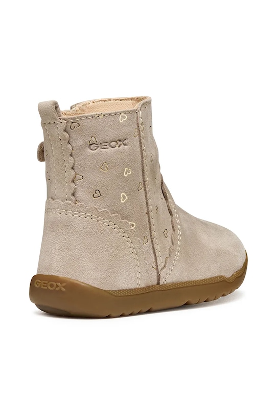 Детские зимние ботинки из коллекции Geox. Модель без подкладки, выполнена из замши. Лёгкие и удобные, идеально подходят для повседневной носки. - Geox Respira System: в них реализована технология Geox Respira, которая благодаря трехслойной подошве с дышащей системой перфорации улучшает вентиляцию, тем самым заботясь о здоровье ваших ног и обеспечивая комфорт при использовании обуви. - Поднятый верх. - Круглый нос. - Петли облегчают надевание обуви на ногу. - Широкий носок предотвращает давление на пальцы ног. - Застежка-молния. - Жесткий задник стабилизирует пятку и удерживает ногу в обуви, не давая ей выскальзывать во время движения. - Модель со съемной кожаной стелькой с принтом позволяет точно подогнать размер ноги.