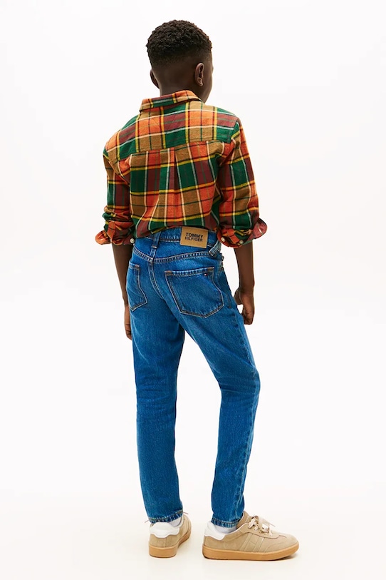 Эти детские джинсы Tommy Hilfiger имеют облегающий крой и стандартную талию. Они изготовлены из слегка эластичного денима. - Приталенный крой. - Застежка на пуговицы и молнию. - Модель с пятью классическими накладными карманами - тремя спереди и двумя сзади. - Этот продукт частично изготовлен из переработанного хлопка. - Хлопковый эластичный деним - Декоративные потертости.