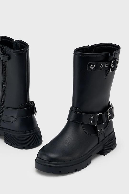 Детские ботильоны из коллекции Mayoral из экокожи. Верх не пористый, легко чистится влажной тканью.