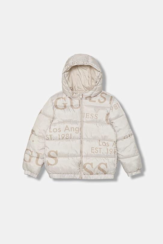 Детская куртка из коллекции Guess. Эта утеплённая модель выполнена из ткани с рисунком. Синтетический утеплитель обеспечивает дополнительный комфорт в прохладную погоду. - Большой размер. - Утепленная модель с подкладкой. - Застежка-молния. - Накладные карманы. - Поднятый воротник и несъемный капюшон обеспечивают дополнительную защиту от холода. - Лоскутное шитье. - Длина рукава (от капюшона): 68 см. - Длина: 61 см. - Ширина под мышками: 56 см. - Размеры указаны для роста: 166-175 см.