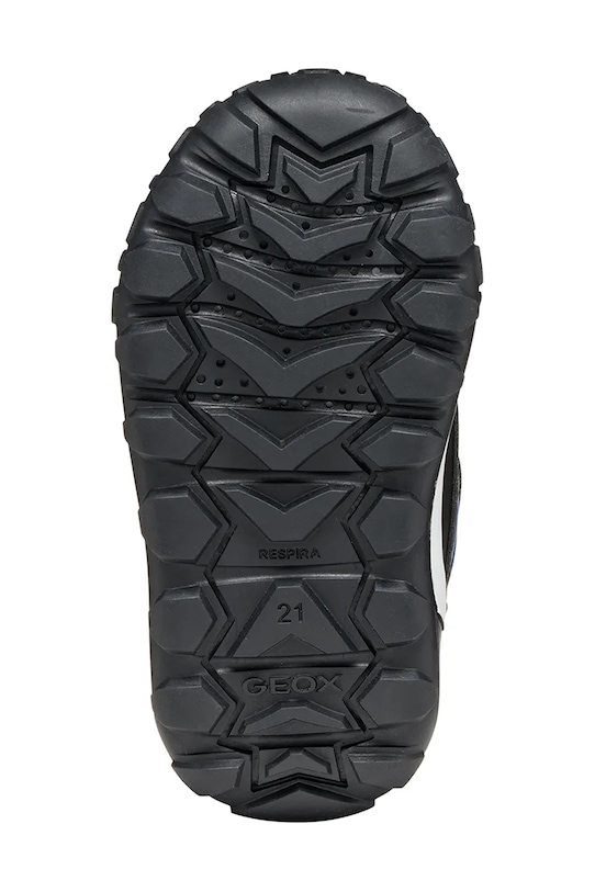 Детские зимние ботинки из коллекции Geox. Эта утеплённая модель изготовлена из комбинации текстиля и синтетических материалов. Лёгкая и удобная, идеально подходит для повседневной носки. - Эта модель оснащена технологией Amphibiox. Специальная дышащая и водонепроницаемая мембрана защищает как подошву, так и верх, предотвращая попадание воды внутрь обуви и обеспечивая исключительную воздухопроницаемость. - Технология Geox Respira благодаря специальной дышащей и водонепроницаемой мембране пропускает влагу и обеспечивает водонепроницаемость. - Приподнятый верх помогает укрепить ногу в области лодыжки, что защищает от неконтролируемых движений при движении по неровной поверхности. - Застежка-липучка. - Широкий носок предотвращает давление на пальцы ног. - Нескользящая резиновая подошва.