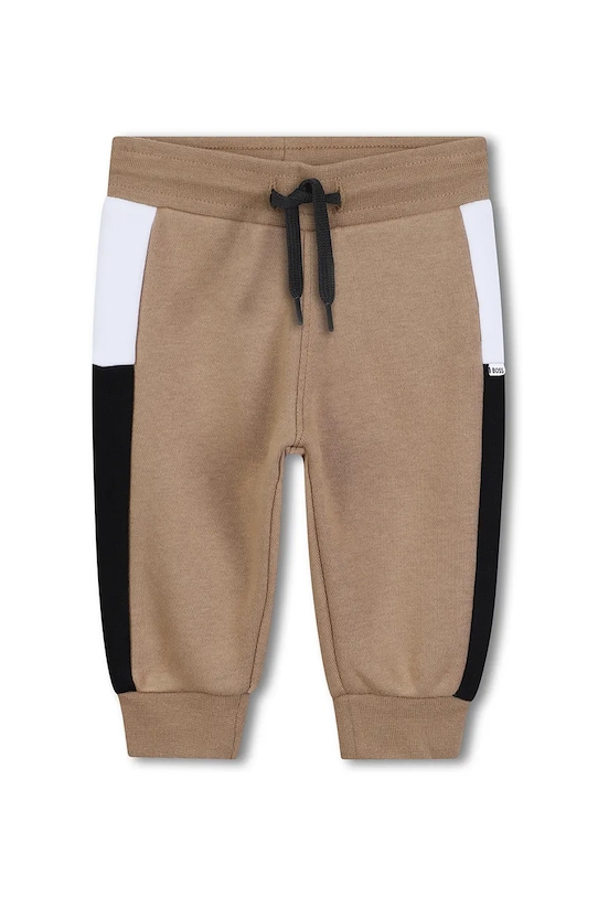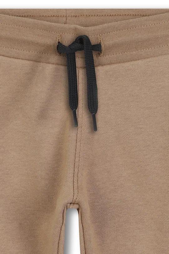 Эти детские спортивные штаны из коллекции BOSS изготовлены из тонкого, слегка эластичного трикотажа. Они изготовлены из исключительно комфортного материала с высоким содержанием хлопка. - Брюки слегка приталенные на бедрах. - Ножки отделаны удобными эластичными манжетами. - Эластичный пояс и дополнительная регулировка ширины с помощью шнурков для предотвращения сползания во время движения.