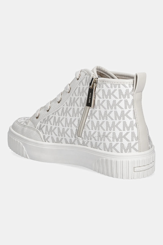 Эти детские кроссовки Michael Kors изготовлены из искусственной кожи. Регулируемый верх обеспечивает индивидуальную посадку. - Модель на шнуровке с застежкой-молнией сбоку. - Плоские шнурки устраняют давление на подъем стопы, обеспечивая хорошую посадку и комфорт. - Петля сзади облегчает надевание и снятие обуви. - Круглый, жёсткий носок. - Жесткий задник стабилизирует пятку и удерживает ногу в обуви, не давая ей выскальзывать во время движения. - Текстильная внутренняя часть комфортна для ног и облегчает содержание обуви в чистоте. - Резиновая подошва прочная и устойчивая к повреждениям.