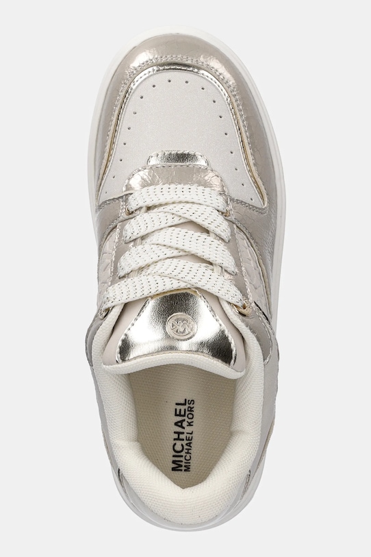 Эти детские кроссовки из коллекции Michael Kors изготовлены из комбинации экокожи и текстиля. Классическая шнуровка позволяет регулировать посадку. - Круглый, жёсткий носок. - Жесткий задник стабилизирует пятку и удерживает ногу в обуви, не давая ей выскальзывать во время движения. - Резиновая подошва прочная и устойчивая к повреждениям. - Текстильная внутренняя часть комфортна для ног и облегчает содержание обуви в чистоте. - Классическая шнуровка позволяет индивидуально подогнать обувь по ноге. - Платформенная модель. - Высота платформы: 3,5 см. - Длина вставки: 21 см. - Размеры указаны для размера: 33.