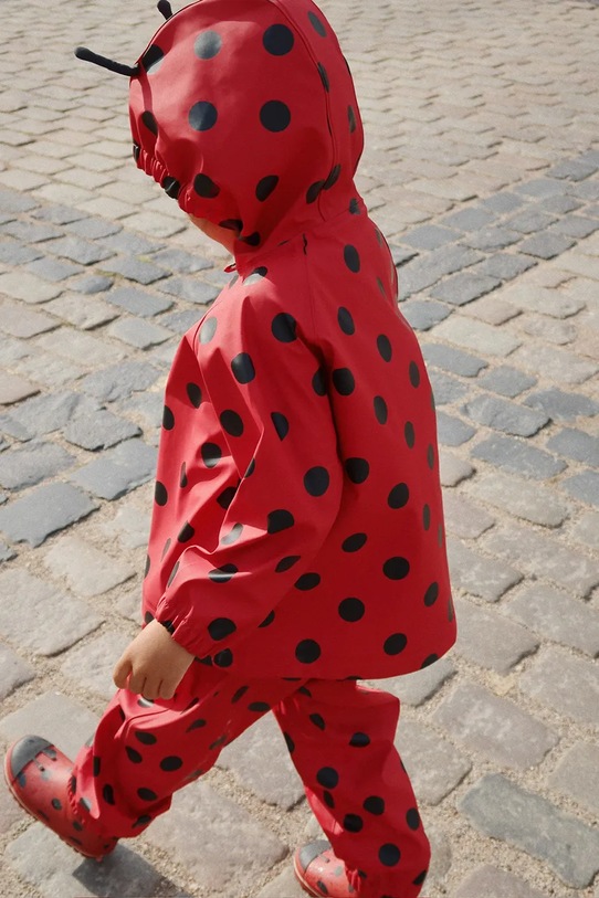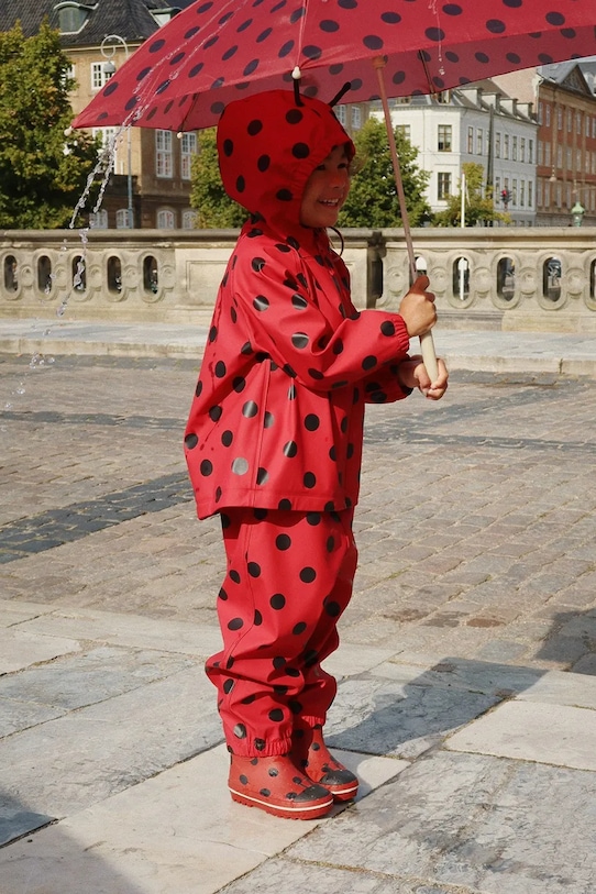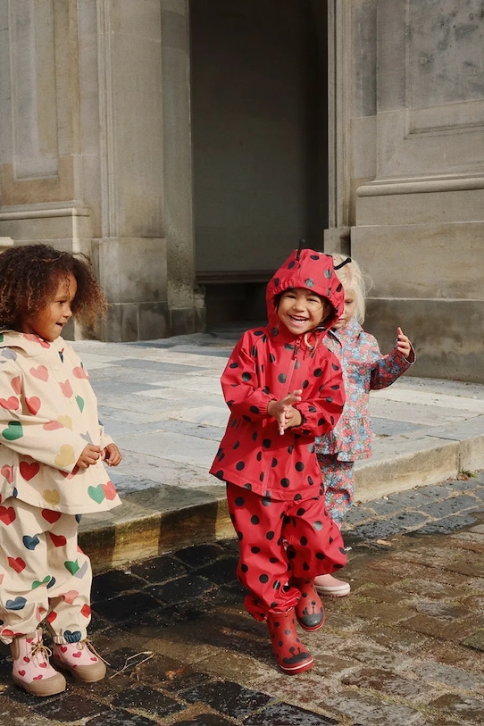 Этот комплект из коллекции Konges Sløjd с длинными рукавами выполнен из гладкого материала. Он включает в себя куртку-дождевик и брюки. - Материал проверен на наличие вредных веществ: Oeko-Tex Standard 100. - Сварные швы герметизируют и предотвращают проникновение ветра и влаги. - Удобная застежка-молния позволяет легко надевать и снимать. - Рукава отделаны удобными эластичными манжетами. - Модель с капюшоном. - Водонепроницаемая модель.