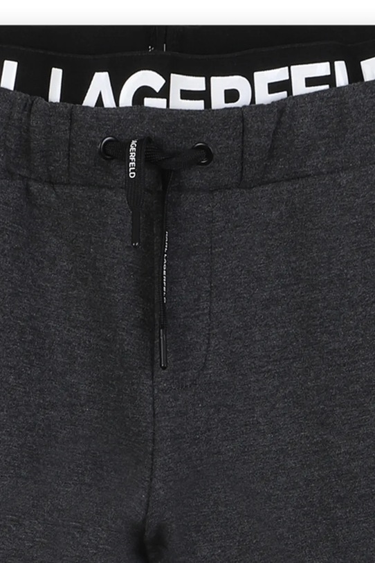 Детские спортивные брюки из коллекции Karl Lagerfeld из трикотажного полотна. - Эластичный пояс. - Регулировка ширины талии с помощью шнурков. - Два боковых накладных кармана. - Накладной карман сзади, без застежки.