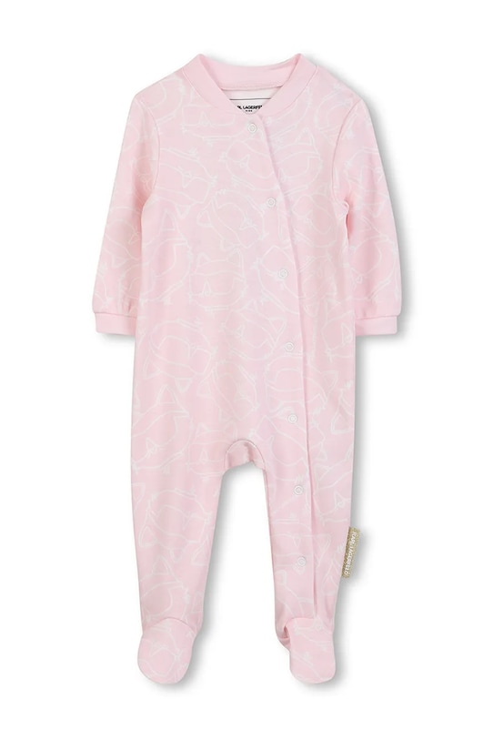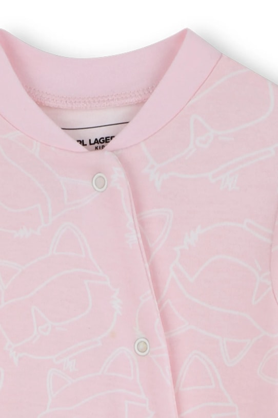 Этот детский комплект из коллекции Karl Lagerfeld выполнен из узорчатого трикотажа. - Органический хлопок выращивается без использования вредных химикатов, химических пестицидов и искусственных удобрений. - Простой дизайн, не стесняющий движений. - Рукава отделаны узкой эластичной манжетой. - Застежка-кнопка. - В комплект входят комбинезон, шапочка и нагрудник. - Классический круглый вырез.
