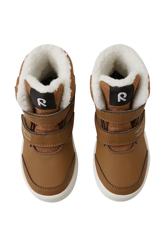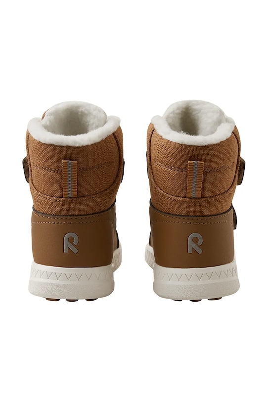 Детские зимние ботинки из коллекции Reima утеплены и изготовлены из комбинации синтетических и текстильных материалов. - Круглый, жёсткий носок. - Резиновая подошва прочная и устойчивая к повреждениям. - Застежка-липучка позволяет легко надевать и снимать обувь. - Приподнятый верх помогает укрепить ногу в области лодыжки, что защищает от неконтролируемых движений при движении по неровной поверхности. - Жесткий задник стабилизирует пятку и удерживает ногу в обуви, не давая ей выскальзывать во время движения. - Текстильная внутренняя часть комфортна для ног и облегчает содержание обуви в чистоте. - Петля сзади облегчает надевание и снятие обуви. - Мягкая внутренняя отделка обеспечивает высокий комфорт использования и оптимальный тепловой комфорт. - Светоотражающие элементы повышают видимость и безопасность в темное время суток.