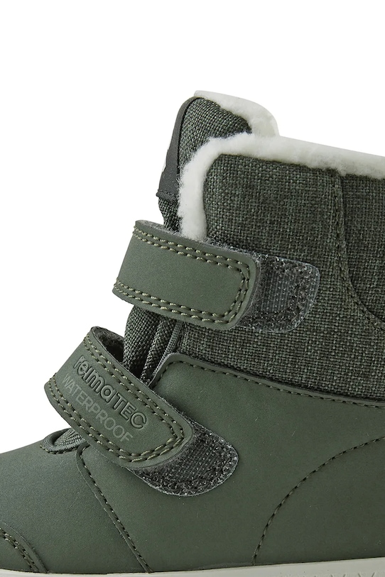 Детские зимние ботинки из коллекции Reima утеплены и изготовлены из комбинации синтетических и текстильных материалов. - Круглый, жёсткий носок. - Резиновая подошва прочная и устойчивая к повреждениям. - Застежка-липучка позволяет легко надевать и снимать обувь. - Приподнятый верх помогает укрепить ногу в области лодыжки, что защищает от неконтролируемых движений при движении по неровной поверхности. - Жесткий задник стабилизирует пятку и удерживает ногу в обуви, не давая ей выскальзывать во время движения. - Текстильная внутренняя часть комфортна для ног и облегчает содержание обуви в чистоте. - Петля сзади облегчает надевание и снятие обуви. - Мягкая внутренняя отделка обеспечивает высокий комфорт использования и оптимальный тепловой комфорт. - Светоотражающие элементы повышают видимость и безопасность в темное время суток.