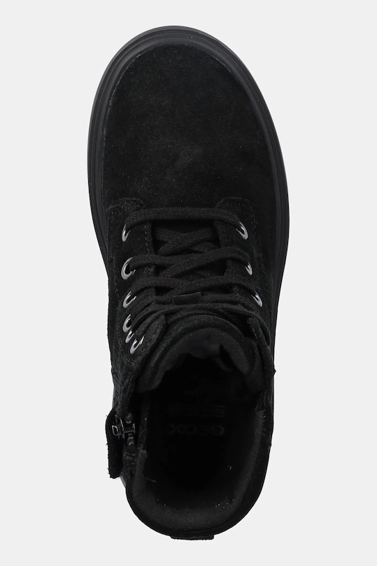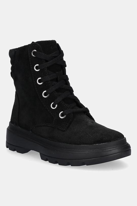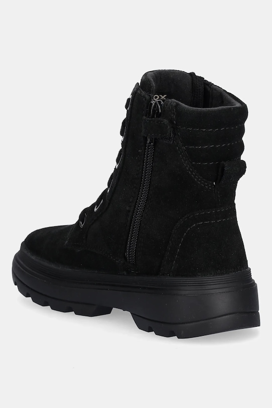 Детские ботильоны из коллекции Geox. Изготовлены из замши и оснащены гибкой резиновой подошвой, прочной и устойчивой к повреждениям. - Круглый, жёсткий носок. - Резиновая подошва прочная и устойчивая к повреждениям. - Жесткий задник стабилизирует пятку и удерживает ногу в обуви, не давая ей выскальзывать во время движения. - Приподнятый верх помогает укрепить ногу в области лодыжки, что защищает от неконтролируемых движений и травм. - Текстильная стелька комфортна для стопы и облегчает содержание обуви в чистоте. - Классическая шнуровка позволяет индивидуально подогнать обувь по ноге.