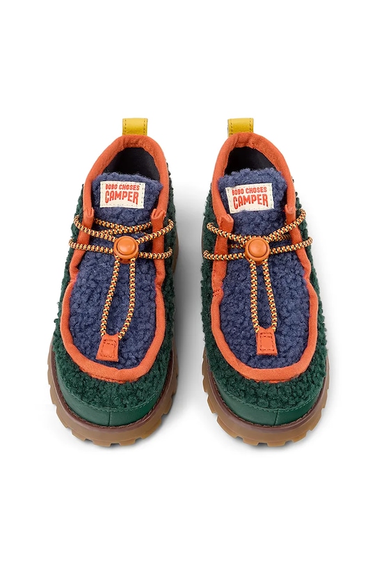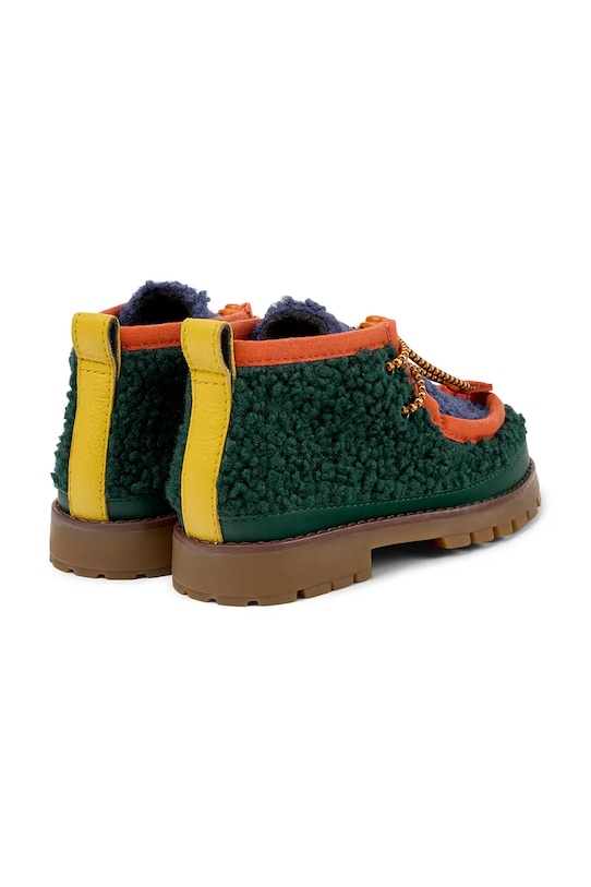 Детские зимние ботинки из коллекции Camper. Эта неутеплённая модель выполнена из комбинации натуральной кожи и текстиля. Подошва слегка гибкая, прочная и устойчивая к повреждениям. - Изделие содержит переработанные волокнистые материалы. - Круглый, слегка утолщенный носок. - Жесткий задник стабилизирует пятку и удерживает ногу в обуви, не давая ей выскальзывать во время движения. - Система быстрой шнуровки со стопорами позволяет легко надевать и снимать обувь. - Петля сзади облегчает надевание и снятие обуви. - Резиновая подошва прочная и устойчивая к повреждениям. - Текстильная внутренняя часть комфортна для ног и облегчает содержание обуви в чистоте.