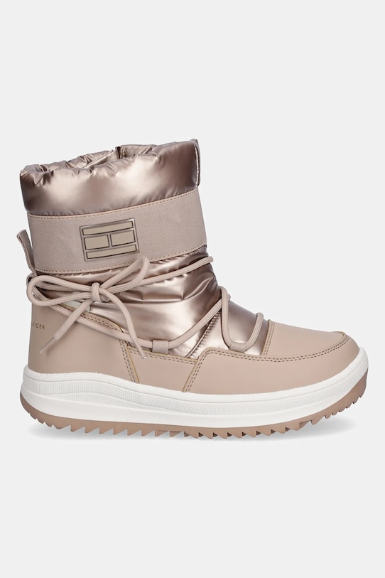 Эти зимние детские ботинки из коллекции Tommy Hilfiger. Они утеплённые и изготовлены из комбинации экокожи и текстиля. Водостойкость означает повышенную устойчивость к воздействию воды. Изделие сохраняет свои свойства при контакте с водой, что обеспечивает больший комфорт благодаря более низкому порогу водопроницаемости, но не гарантирует полной водонепроницаемости. - Гидрофобная отделка верха препятствует проникновению влаги внутрь, обеспечивая тем самым хорошую защиту от неблагоприятных погодных условий. - Круглый, жёсткий носок. - Жесткий задник стабилизирует пятку и удерживает ногу в обуви, не давая ей выскальзывать во время движения. - Модель на шнуровке с застежкой-молнией сбоку. - Мягкая внутренняя отделка обеспечивает высокий комфорт использования и оптимальный тепловой комфорт. - Текстильная внутренняя часть комфортна для ног и облегчает содержание обуви в чистоте. - Длина вставки: 22 см. - Размеры указаны для размера: 35.