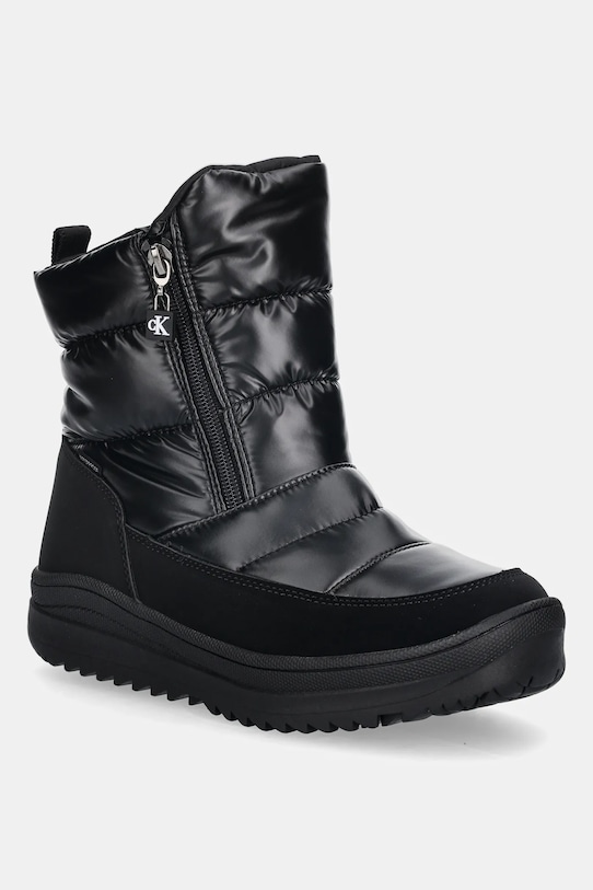 Эти зимние детские ботинки из коллекции Calvin Klein Jeans. Они утеплённые и изготовлены из комбинации текстиля и синтетических материалов. - Круглый, слегка утолщенный носок. - Усиленный задник. - Удобная застежка-молния сбоку позволяет легко надевать и снимать. - Текстильная внутренняя часть комфортна для ног и облегчает содержание обуви в чистоте. - Резиновая подошва прочная и устойчивая к повреждениям. - Длина вставки: 23,5 см. - Размеры указаны для размера: 37.