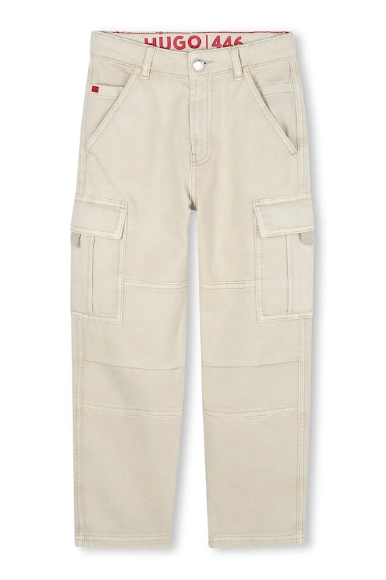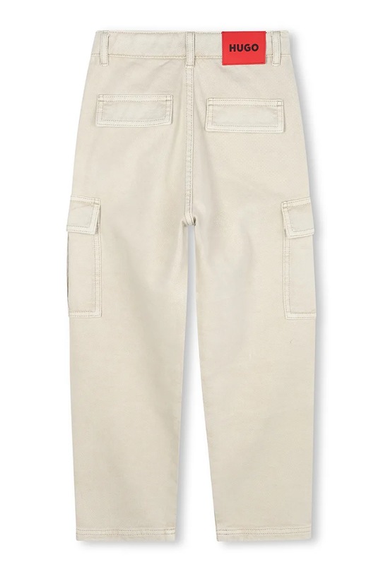 Детские брюки из коллекции HUGO из гладкой ткани. Модель выполнена из исключительно комфортного, дышащего хлопкового материала. - Брюки свободные в области бедер и ягодиц. - Модель со стандартной талией, застежкой на пуговицы и молнию. - Прямая нога полной длины. - Три накладных кармана спереди. - Карманы для груза обеспечивают дополнительное место для хранения мелких предметов. - Модель с декоративными клапанами на ягодицах. - Материал с декоративной строчкой.