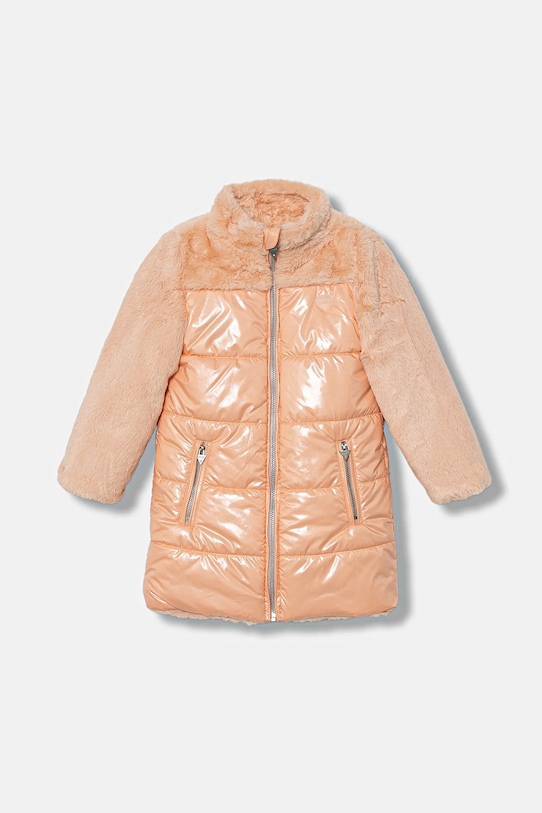 Эта двухсторонняя детская куртка из коллекции Guess с лёгким утеплителем изготовлена из комбинации искусственного меха и гладкой ткани. Эта двухсторонняя куртка обеспечивает полную функциональность при ношении на обе стороны. - Поднятый воротник с застежкой на короткую молнию. - Два боковых накладных кармана. - Внутренние карманы. - Легкоутепленная модель с подкладкой. - Длина: 52 см. - Длина рукава: 37 см. - Ширина под мышками: 34 см. - Ширина плеч: 29 см. - Размеры указаны для роста: 96-104 см.