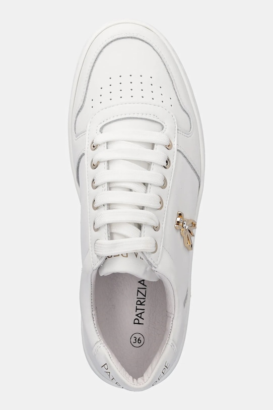 Кроссовки из коллекции Patrizia Pepe из натуральной кожи. Модель имеет усиленный верх для устойчивости. - Круглый, жёсткий носок. - Жесткий задник стабилизирует пятку и удерживает ногу в обуви, не давая ей выскальзывать во время движения. - Резиновая подошва прочная и устойчивая к повреждениям. - Платформенная модель. - Съемная, легко чистящаяся кожаная стелька. - Модель с кожаной внутренней частью, которая удобна для стопы и предотвращает натирание, потертости и появление неприятного запаха. - Классическая шнуровка позволяет индивидуально подогнать обувь по ноге. - Высота платформы: 4 см. - Длина вставки: 23 см. - Размеры указаны для размера: 36.