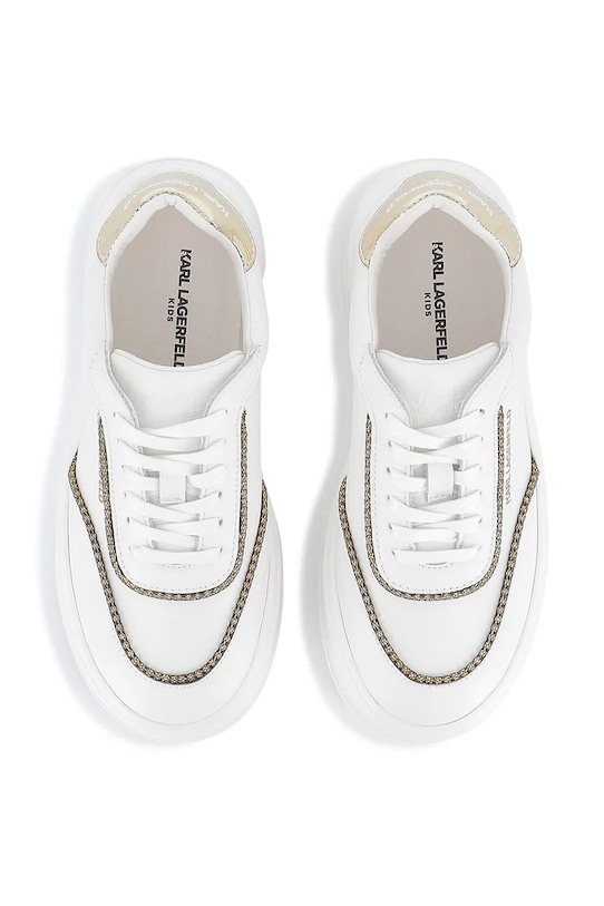 Детские кроссовки из коллекции Karl Lagerfeld из натуральной кожи. Лёгкие и удобные, идеально подходят для повседневной носки. - Классическая шнуровка позволяет индивидуально подогнать обувь по ноге. - Круглый, жёсткий носок. - Жесткий задник стабилизирует пятку и удерживает ногу в обуви, не давая ей выскальзывать во время движения. - Текстильная внутренняя часть комфортна для ног и облегчает содержание обуви в чистоте. - Резиновая подошва прочная и устойчивая к повреждениям.
