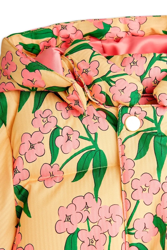 Детская куртка из коллекции Mini Rodini. Эта утеплённая модель выполнена из ткани с рисунком. Стёганая конструкция дополнена синтетическим утеплителем для дополнительного комфорта в прохладную погоду. - Пропитка ткани DWR (Durable Water Repellenency) без ПФУ с технологией Bionic-Finish Eco обеспечивает высокую водостойкость, не содержит перфторированных химических веществ (ПФУ). Эта обработка предотвращает впитывание воды тканью, приводящее к её скатыванию с поверхности. Эта обработка нетоксична и экологична. - Водонепроницаемость: 3000 мм. - Воздухопроницаемость: 3000 г/м2/24 ч. - Простой дизайн, не стесняющий движений. - Съемный капюшон обеспечивает дополнительное тепло и защиту при необходимости. - Длинные рукава с удобными эластичными манжетами. - Молния по всей длине с пристегивающейся ветрозащитной планкой. - Два боковых кармана с застежкой на кнопку.