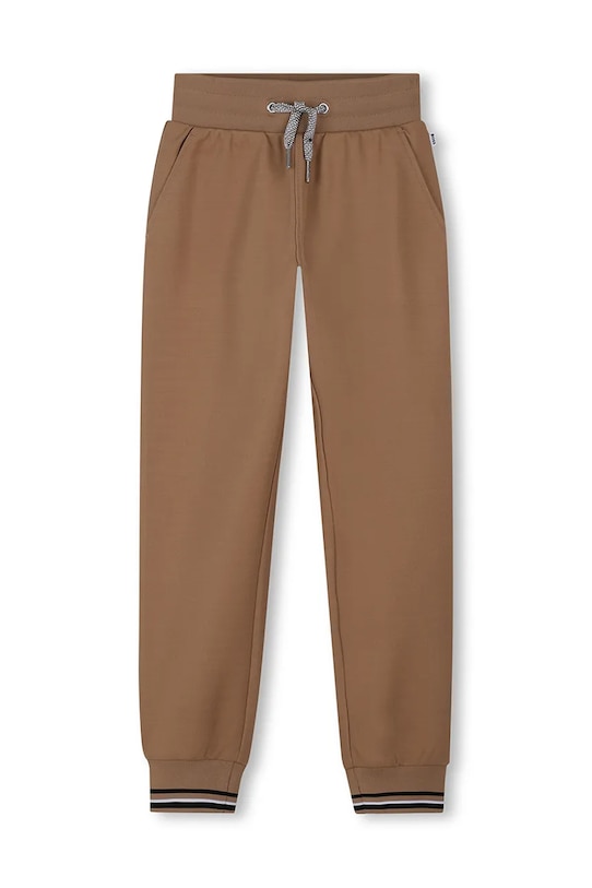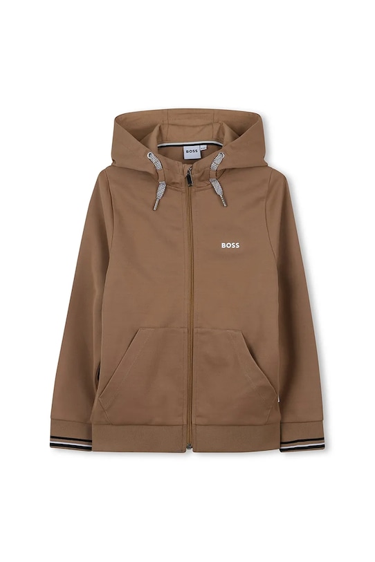 Этот детский спортивный костюм из коллекции BOSS выполнен из тонкого, слегка эластичного трикотажа. Это исключительно комфортный материал с высоким содержанием хлопка. - Простой дизайн, не стесняющий движений. - Удобная застежка-молния позволяет легко надевать и снимать. - Поднятый воротник обеспечивает дополнительную защиту от холода. - Встроенный капюшон обеспечивает дополнительное тепло и защиту при необходимости. - Два боковых накладных кармана. - Рукава и нижний край отделаны удобными эластичными манжетами. - Брюки свободные в области бедер и ягодиц. - Крой с зауженными брючинами, не стесняющими движений. - Эластичный пояс и дополнительная регулировка ширины с помощью шнурков для предотвращения сползания во время движения. - Ножки отделаны удобными эластичными манжетами.