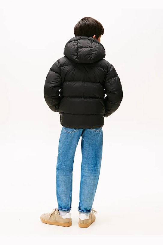 Эта детская пуховая куртка из коллекции Tommy Hilfiger утеплена и изготовлена из стеганого материала. Наполнитель из натурального пуха и пера обеспечивает высокий уровень защиты от холода. - Простой дизайн, не стесняющий движений. - Удобная застежка-молния позволяет легко надевать и снимать. - Поднятый воротник и несъемный капюшон обеспечивают дополнительную защиту от холода. - Рукава отделаны удобными эластичными манжетами. - Два боковых накладных кармана. - Утепленная модель с подкладкой.