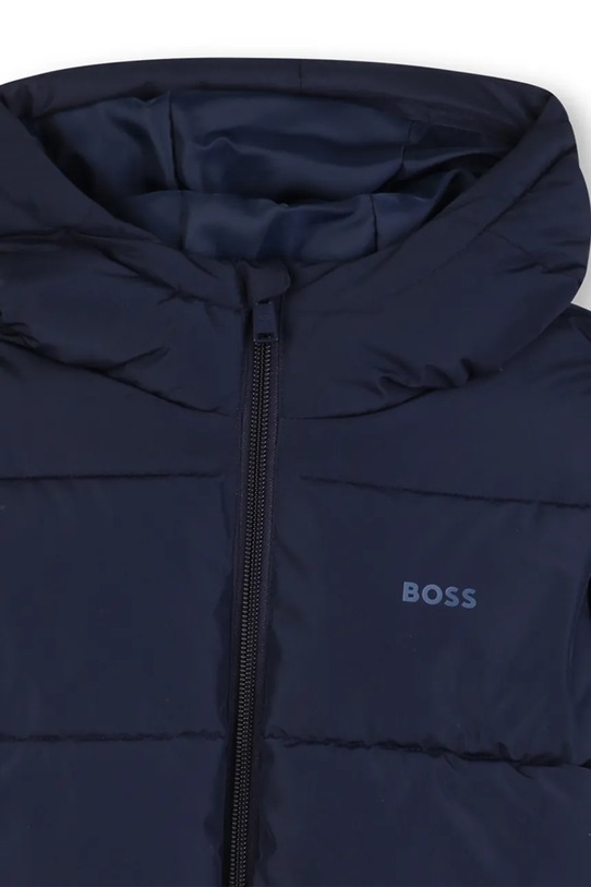 Эта детская куртка из коллекции BOSS утеплена и изготовлена из стёганой ткани. Она также дополнена синтетическим утеплителем для дополнительного комфорта в прохладную погоду. - Простой дизайн, не стесняющий движений. - Удобная застежка-молния позволяет легко надевать и снимать. - Поднятый воротник и несъемный капюшон обеспечивают дополнительную защиту от холода. - Рукава отделаны удобными эластичными манжетами. - Два накладных кармана спереди для удобного хранения мелких предметов. - Утепленная модель с подкладкой.