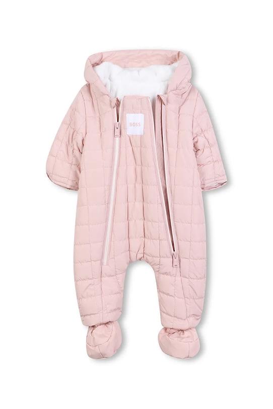 Детский комбинезон из коллекции BOSS. Модель с длинным рукавом, выполнена из гладкого материала. - Простой дизайн, не стесняющий движений. - Встроенный капюшон обеспечивает дополнительное тепло и защиту при необходимости. - Удобная застежка-молния позволяет легко надевать и снимать. - Модель изнутри на подкладке из флисового материала. - Съемные перчатки и бахилы.