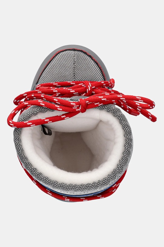 Детские зимние ботинки из коллекции Moon Boot. Эта утеплённая модель выполнена из комбинации текстиля и синтетических материалов. - Модель не делает различий между правым и левым ботинок, универсальная конструкция позволяет использовать их взаимозаменяемо. - Регулировка обхвата верхней части изделия с помощью кулисок со стопорами. - Светоотражающие элементы повышают видимость и безопасность в темное время суток. - Классическая шнуровка позволяет индивидуально подогнать обувь по ноге. - Съемная изоляция. - Текстильная внутренняя часть комфортна для ног и облегчает содержание обуви в чистоте. - Резиновая подошва прочная и устойчивая к повреждениям. - Длина вставки: 15,5 см. - Размеры указаны для размера: 23/26.