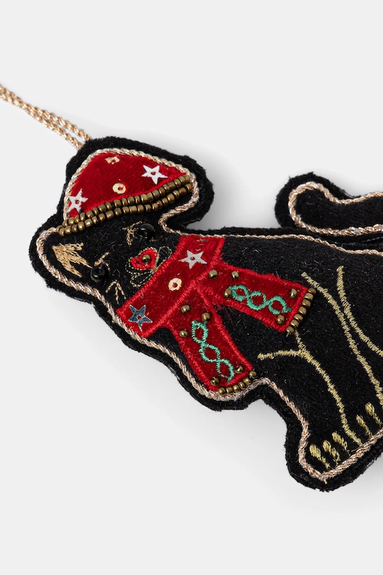 Ёлочное украшение из коллекции «Medicine». Изготовлено из ткани с аппликацией. - Новогоднее украшение в виде кота. - Модель ручной работы. - Изделия ручной работы уникальны и каждая модель может незначительно отличаться друг от друга. - Аппликация из декоративных бусин и пайеток. - Декоративные детали. - Новогоднее украшение оснащено практичной веревочкой - готово к подвешиванию сразу после распаковки. - Размеры: 8,5 см x 10,5 см.