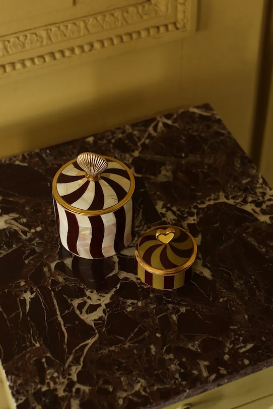 Контейнер с крышкой из коллекции Doing Goods. - Оригинальный дизайн. - Ретро-стиль в сочетании с современными материалами и цветами. - Изготовлено вручную. - Цвета и узоры могут незначительно отличаться. - Изделие произведено в Индии – гарантия высокого качества изготовления и традиций ремесла. - Каждое изделие уникально. - Изделие изготовлено из переработанного материала. - Размеры: 6 х 7 х 7 см.