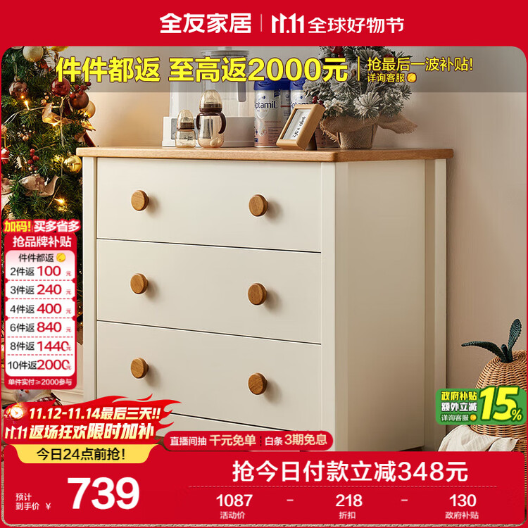 Quanu Комод для детской комнаты, 3 ящика, для хранения игрушек
