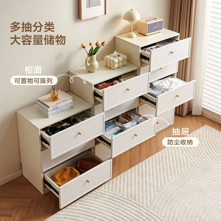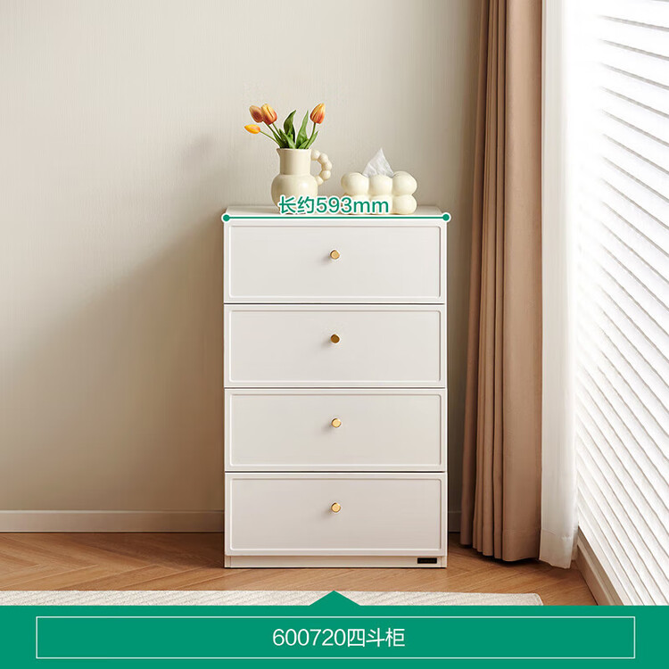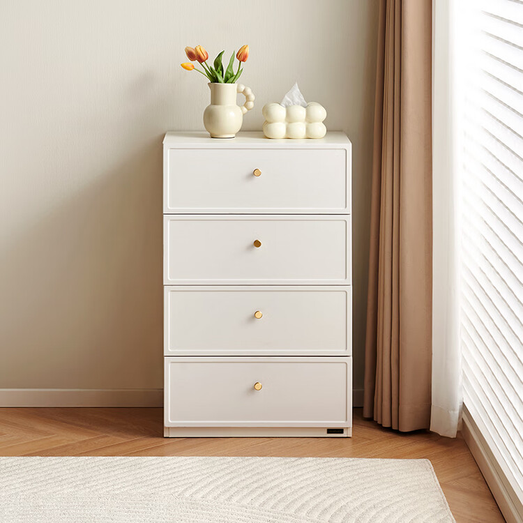 Quanu Комод для прихожей в современном минималистичном стиле, цвет Mousse White, 4 ящика