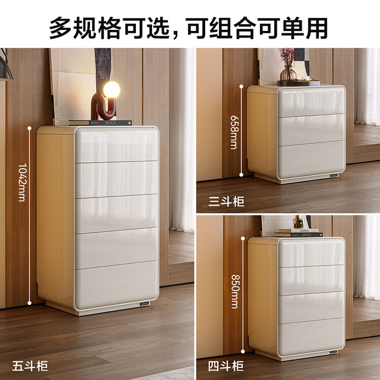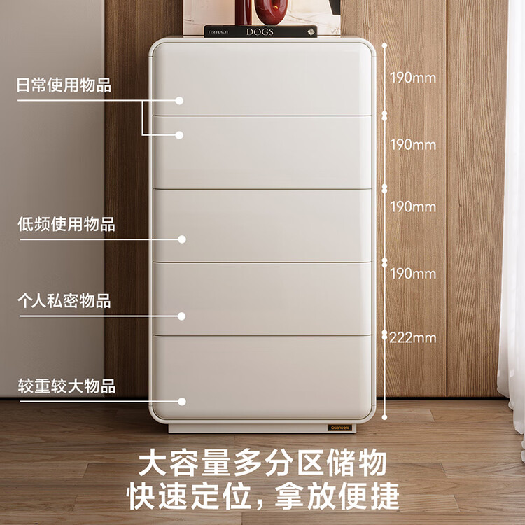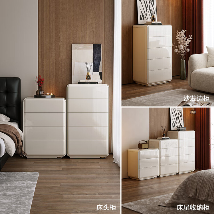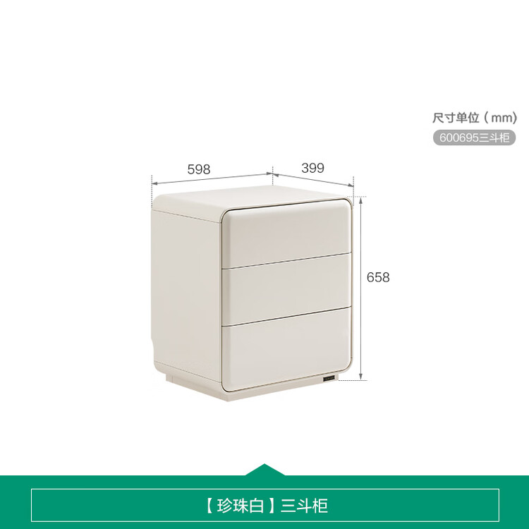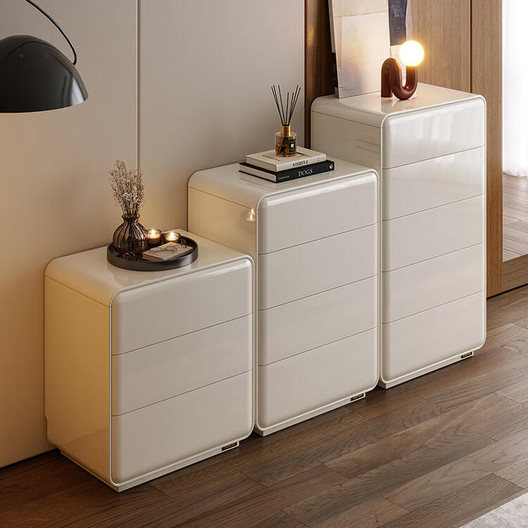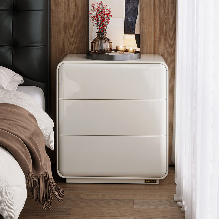 Quanu Комод для спальни в современном минималистичном стиле, кремовый, 3 ящика