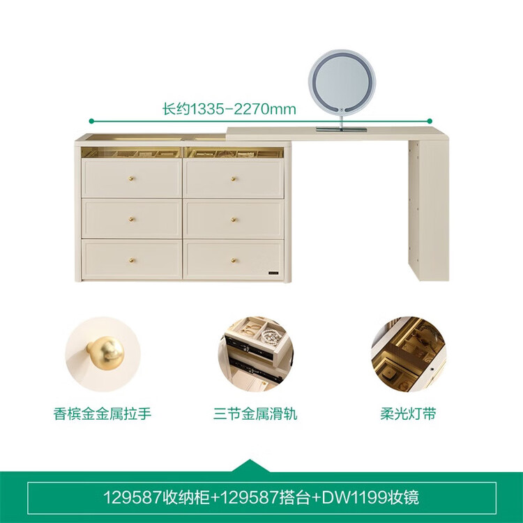 Quanu Комод для спальни из дерева с зеркалом, 3 ящика, белый 61 208₽