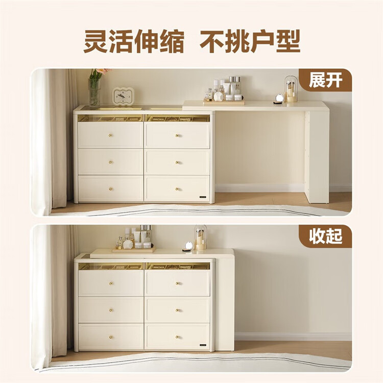 Quanu Комод для спальни из дерева с зеркалом, 3 ящика, белый