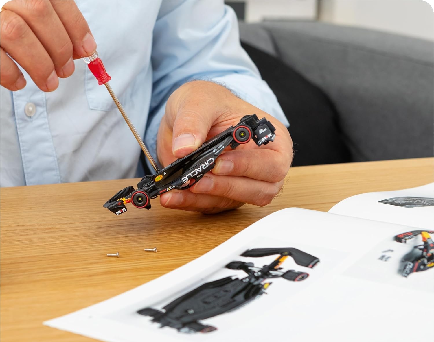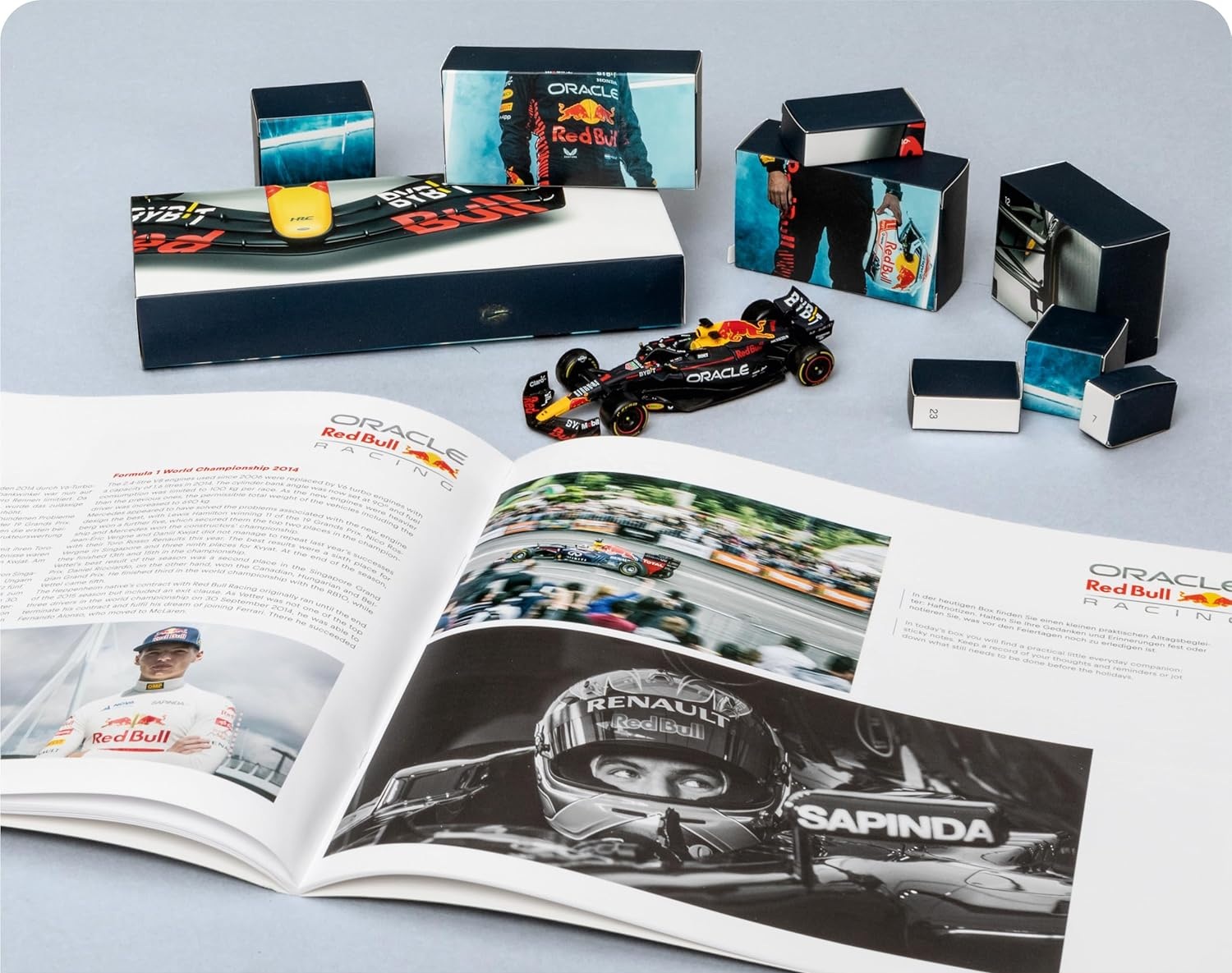 В комплекте предусмотрена подставка с звуковыми эффектами, которые добавляют собранной модели динамику и атмосферу гоночного трека. Календарь дарит не только радость ежедневных открытий, но и уникальный ритуал приближения праздника, наполненный драйвом, духом соревнования и превосходства. Он станет впечатляющим подарком для поклонников Red Bull Racing, любителей автоспорта и всех, кто хочет ощутить магию скорости прямо у себя дома.