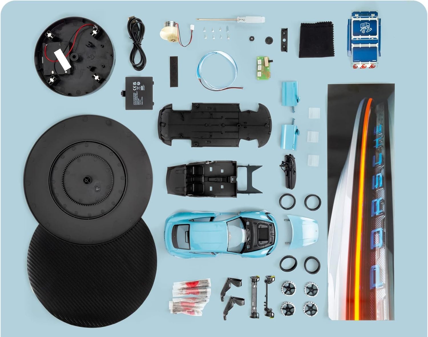 Всё оформлено в фирменном стиле, который передаёт дух бренда: ощущение скорости, чистой энергии и инженерного совершенства. В комплекте есть подставка с электронным звуковым модулем, благодаря которому модель оживает мягким светом и реалистичным звучанием. Это не просто календарь, а стильный подарок для ценителей Porsche, коллекционеров и всех, кто любит превращать праздничные дни в особенное путешествие, наполненное эстетикой, атмосферой и вдохновением.