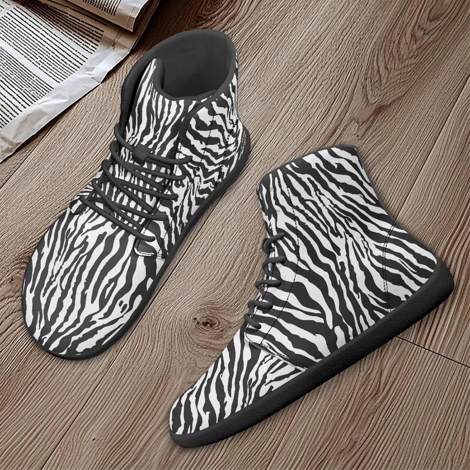 Finger Love Heart Pattern Womens Barefoot Boots Shoes Winter Snow Boots Warm Ankle Booties Pugasmiru, Zebra-Stripe Pattern