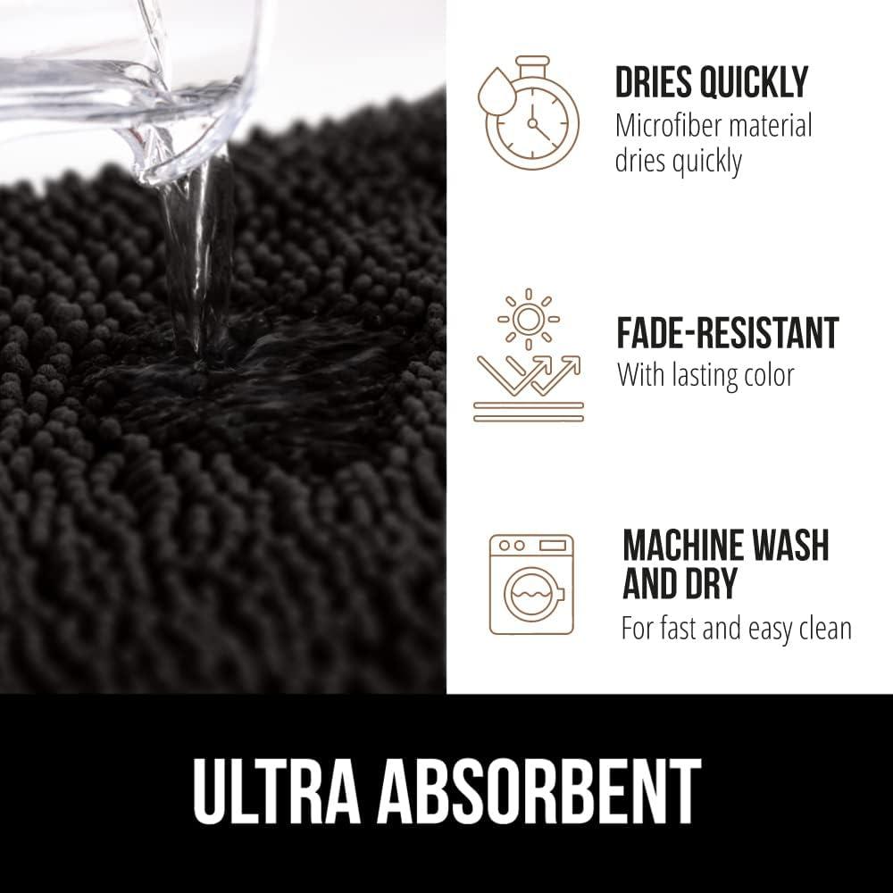 Коврик для ванной Gorilla Grip имеет впитывающий верхний слой из шенилла, который быстро удаляет влагу с ног. Его плотная резиновая подложка надёжно фиксирует коврик на полу, предотвращая скольжение. Благодаря быстросохнущим материалам, он остаётся гигиеничным и препятствует образованию плесени. Продукт идеально сочетает безопасность, удобство и практичность для ежедневного использования.