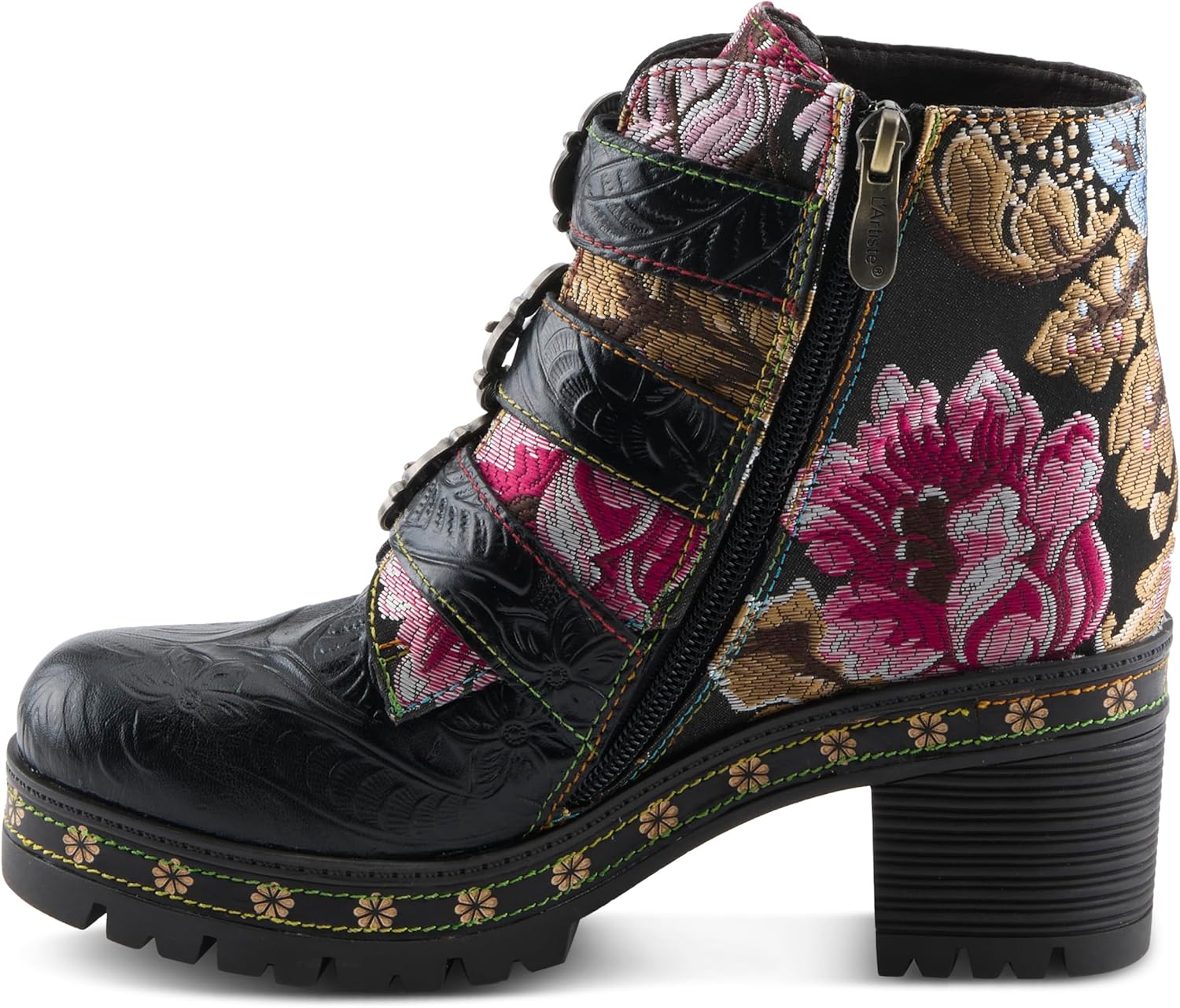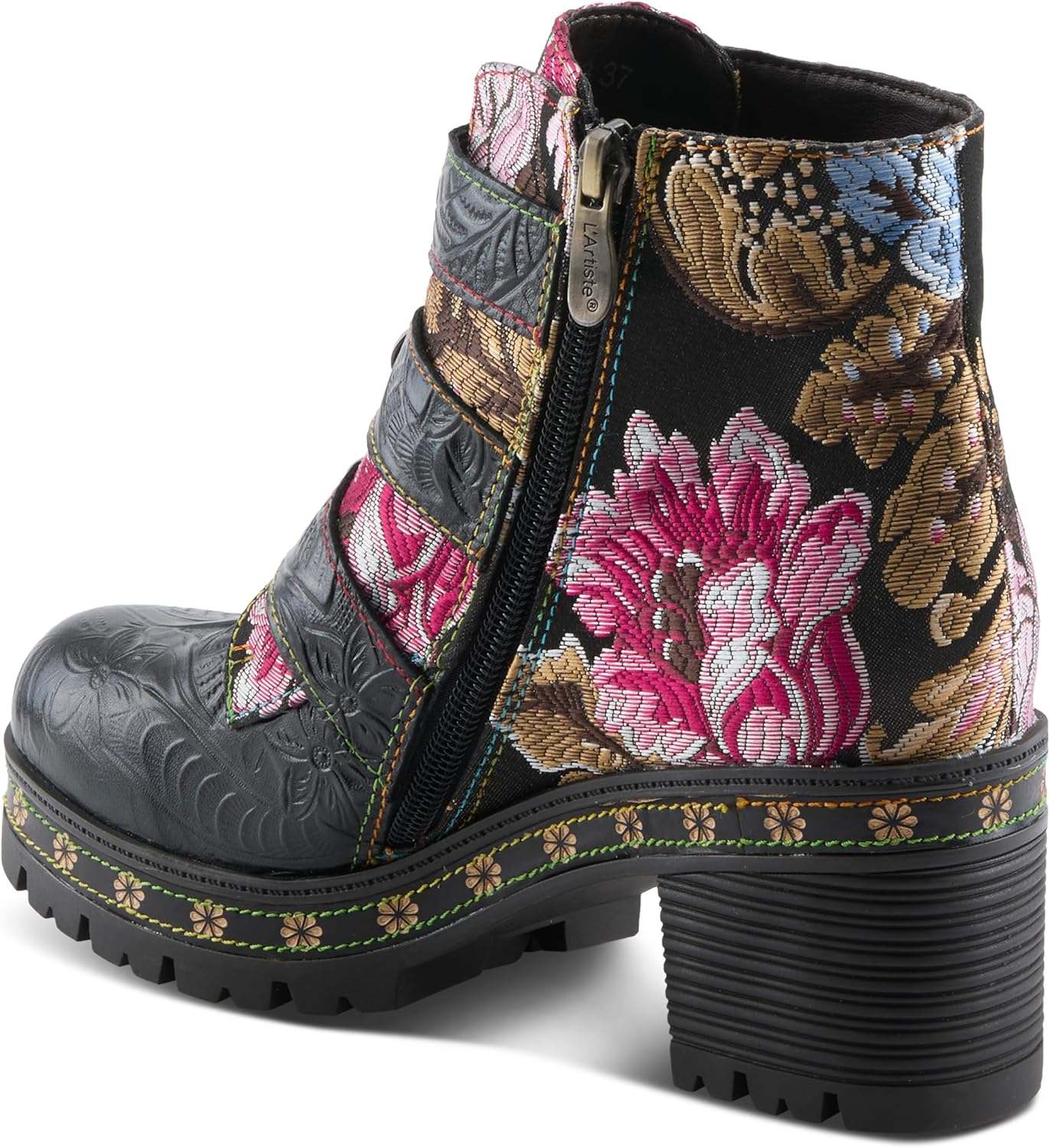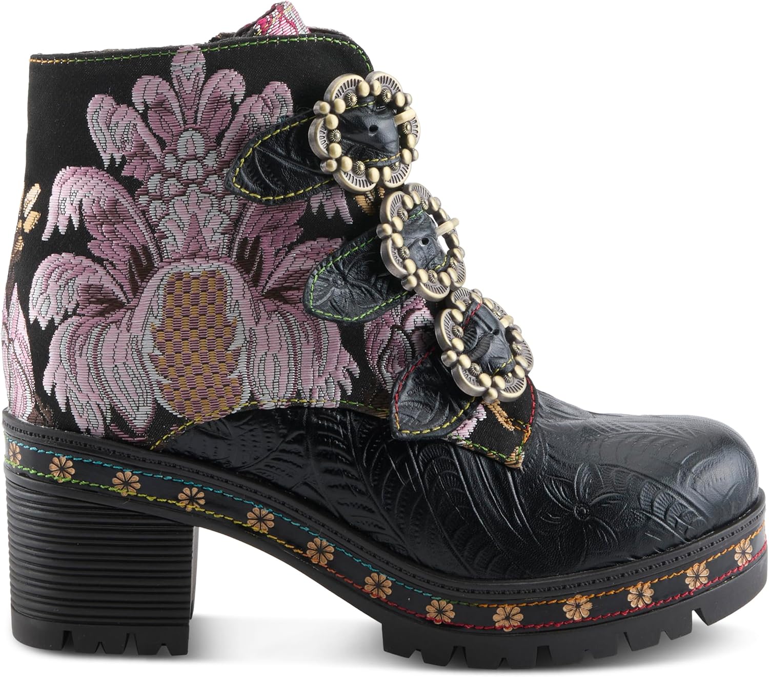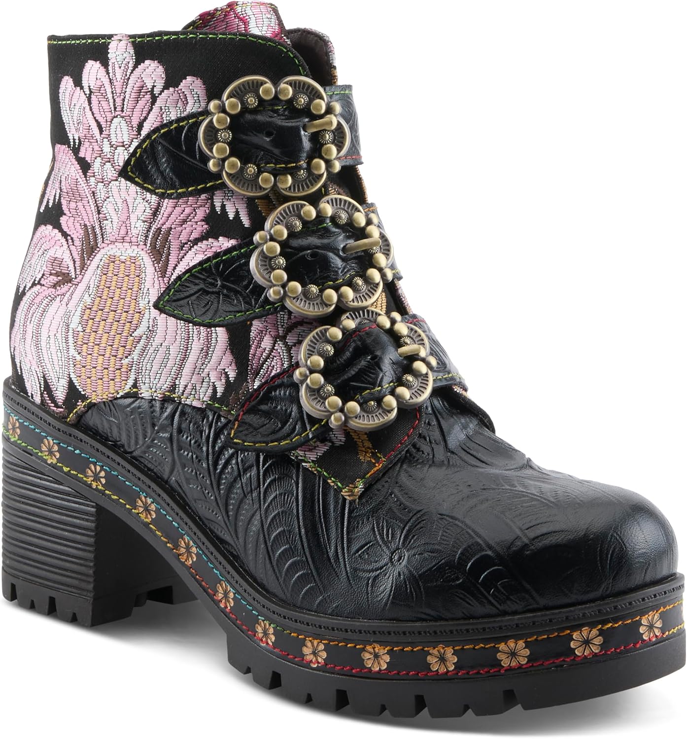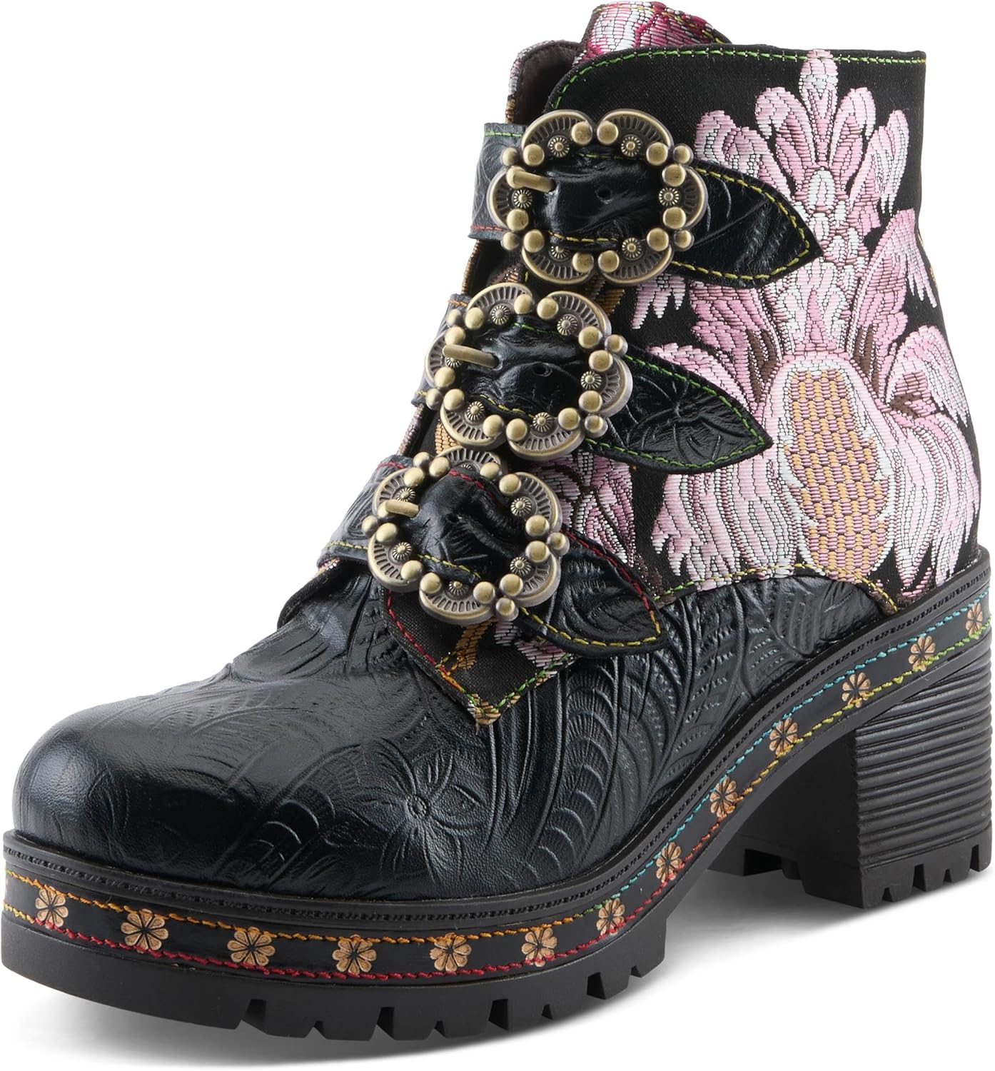 Ботильоны на платформе Spring Step L'Artiste Brazza | Смелые художественные кожаные ботильоны с вышивкой, Black Multi