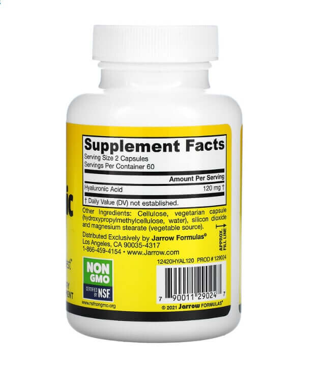 Гиалуроновая кислота от Jarrow Formulas получена в результате биологической ферментации. Она биодоступна и поддерживает здоровье кожи.