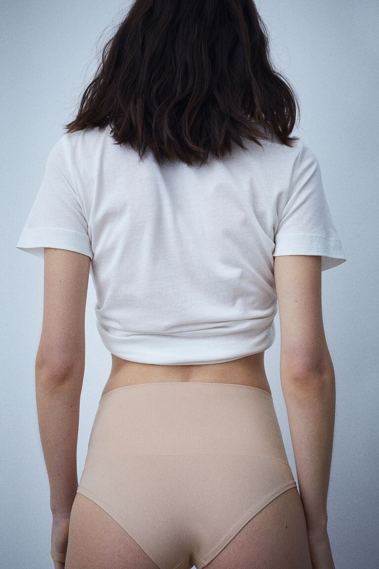 Трусики из джерси с умеренно моделирующим эффектом на талии. Высокая талия, ластовица на подкладке и узкий вырез сзади. Он спроектирован так, чтобы иметь минимальное количество швов, чтобы создавать ощущение комфорта и гладкости на коже, и быть максимально незаметным под одеждой.