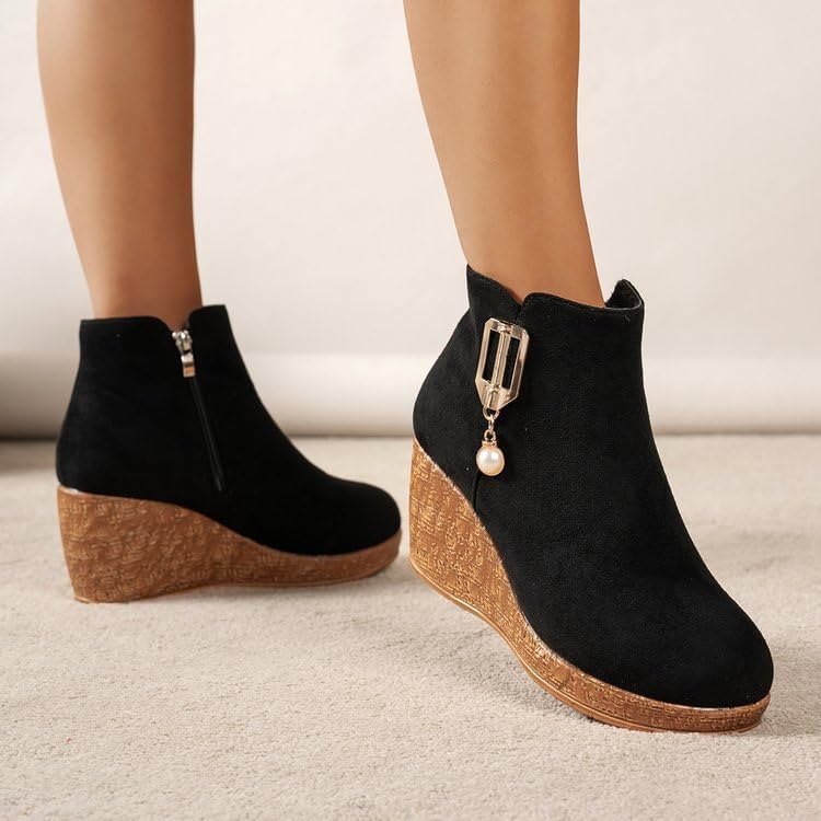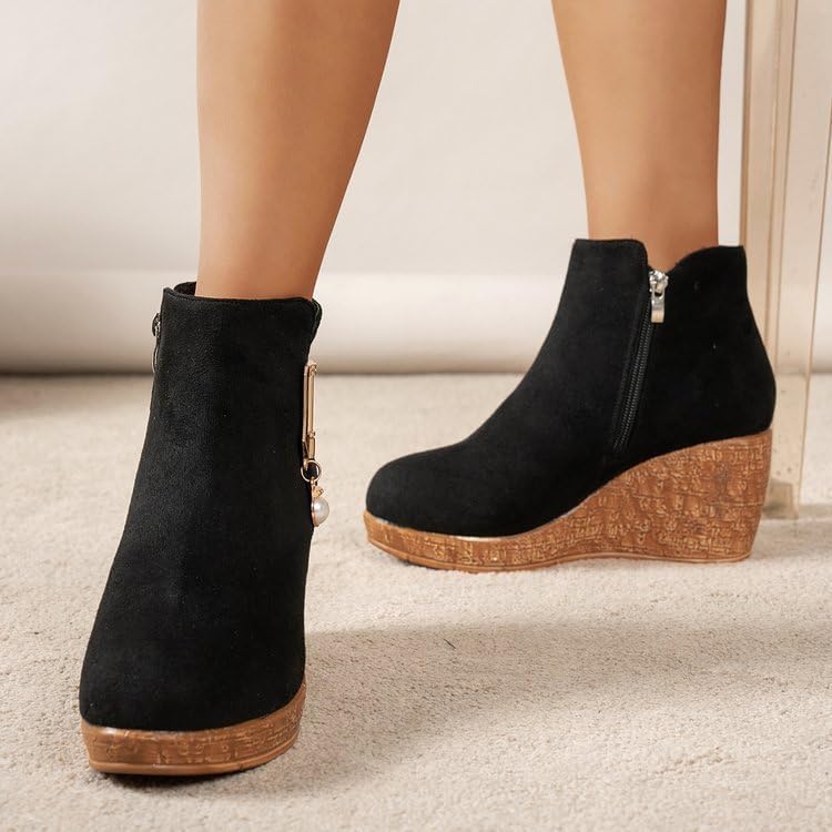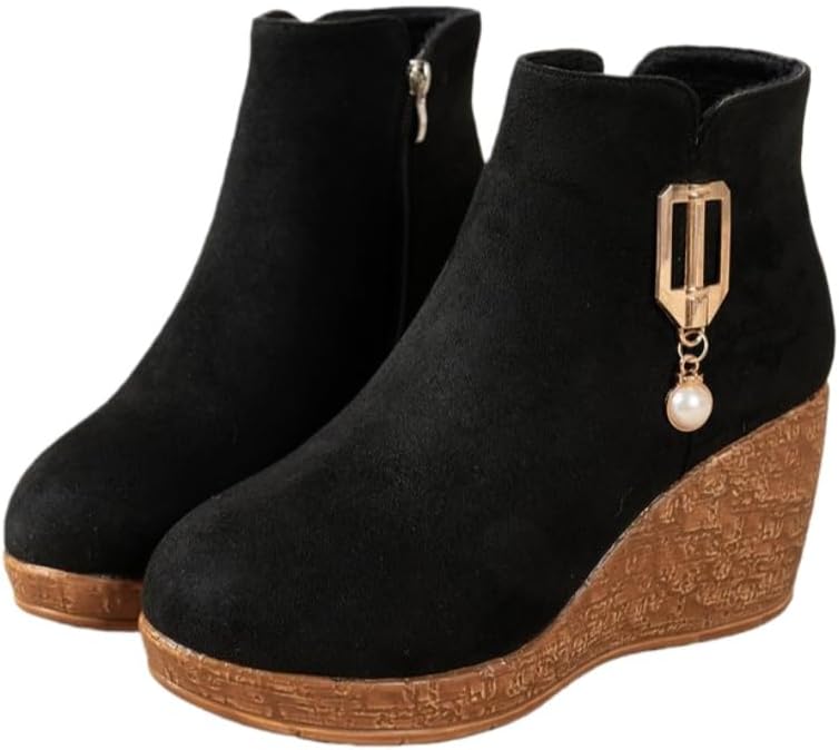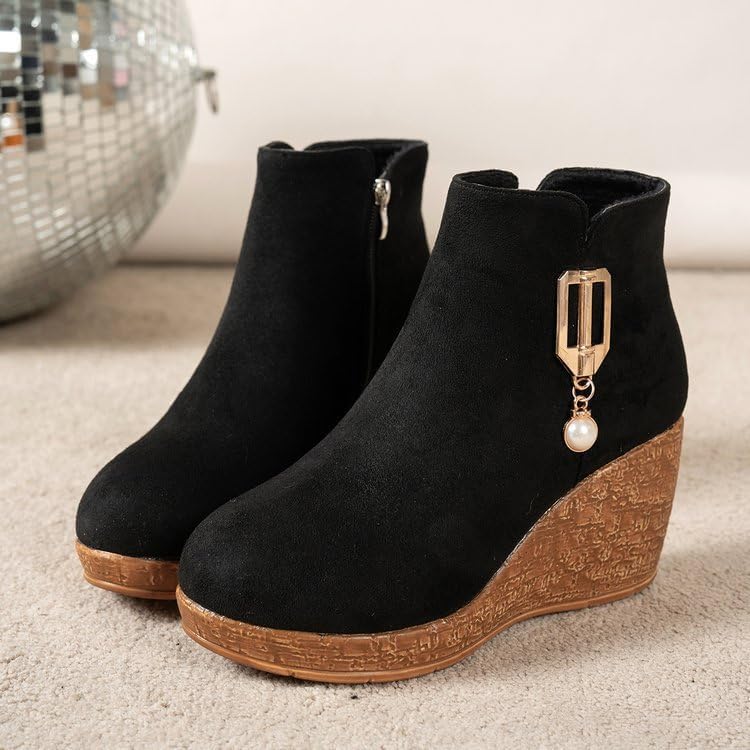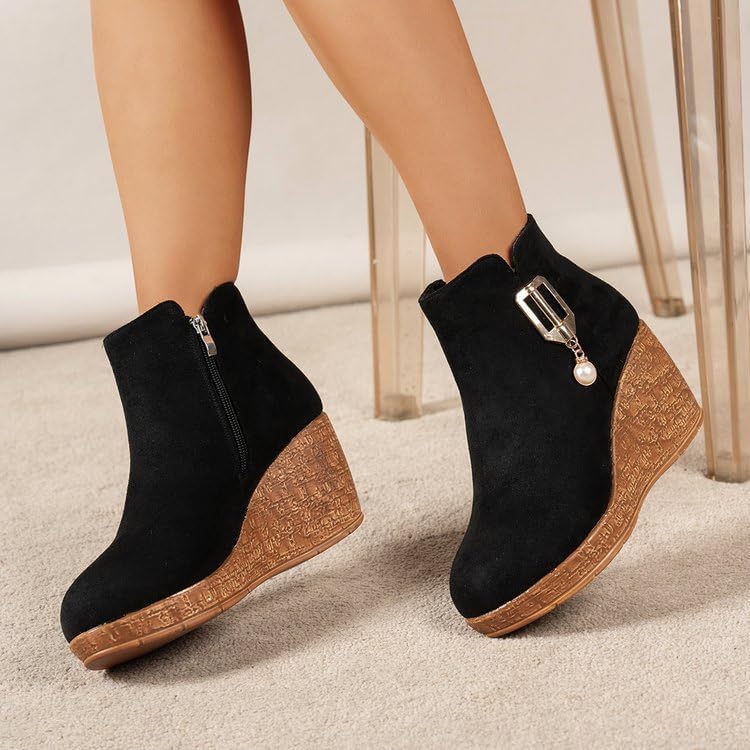 Fusecottc Ботинки Black round-toed rubber sole, women's large size, soft and comfortable, with an inner zipper.