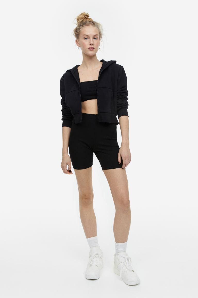 Короткие леггинсы из мягкого хлопкового трикотажа. Нормальная посадка, прикрытая эластичная талия.