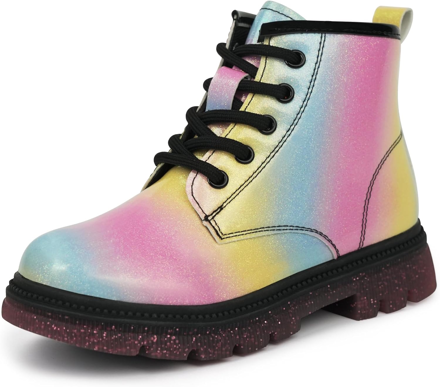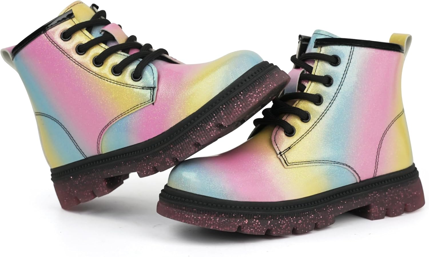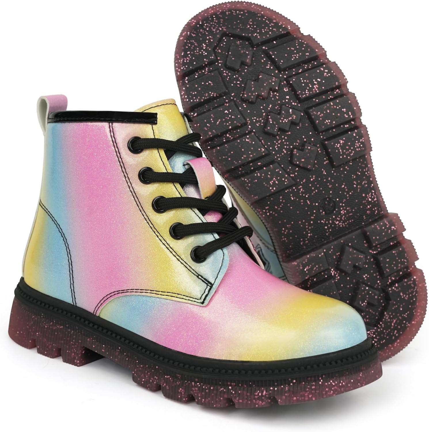 Детские ботинки JABASIC для девочек, ботинки на шнуровке с блестками, рабочие боевые ботинки, Regenbogen